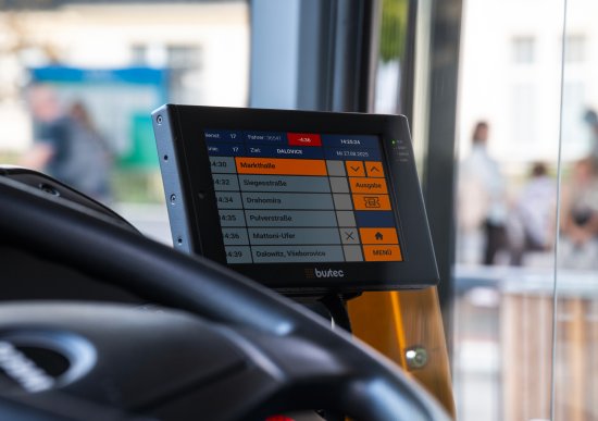 Obrazovka řídicího počítače v autobusu od společnosti Bustec